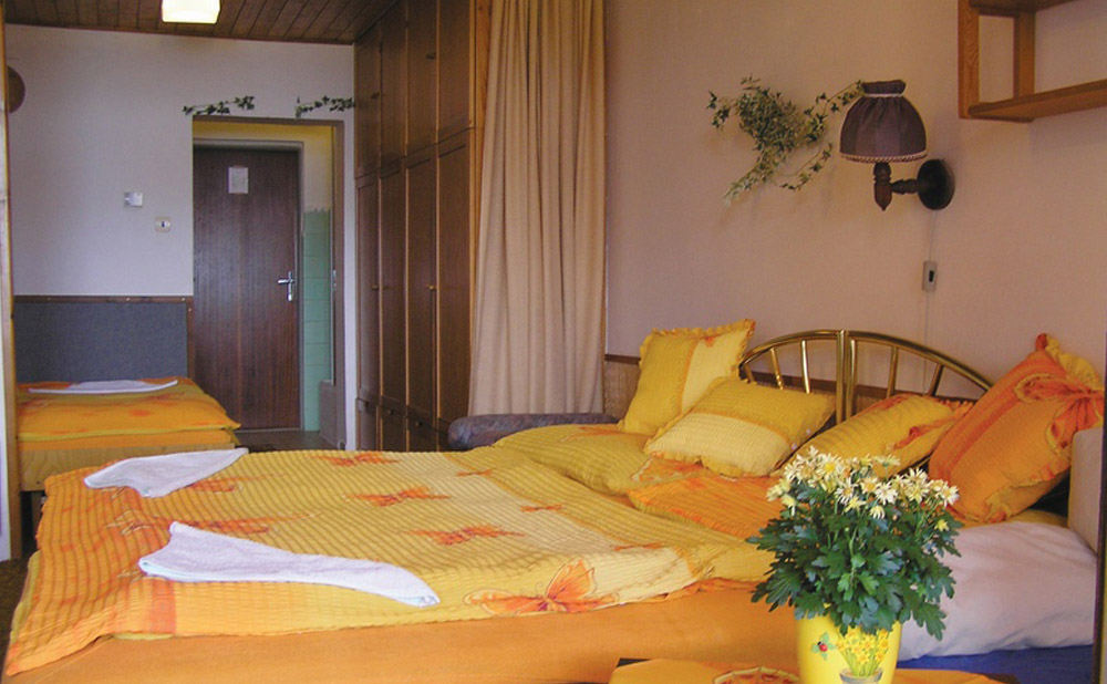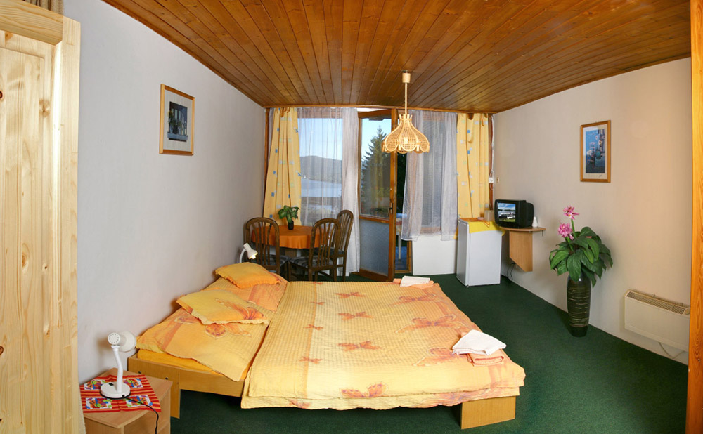 Die Pension verfügt über 60 Betten in 15 Zimmern. Alle Zimmer sind Doppelbettzimmer mit zwei Aufbettungen, ausgestattet mit eigener Sanitäreinrichtung (WC, Dusche) und einem Farbfernseher. Die Zimmer sind sehr geräumig, jedes Zimmer hat einen sonnigen Balkon mit einzigartigem Ausblick auf den Lipno-Stausee.